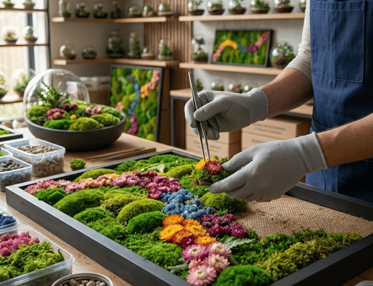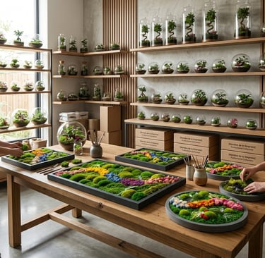 Somos un equipo de apasionados por las plantas y la decoración. Creamos a mano piezas de decoración vegetal como terrarios, cuadros de musgo y composiciones variadas. Nos dedicamos a ello para profesionales del sector: viveros, floristerías y tiendas de decoración que buscan productos naturales y con encanto.